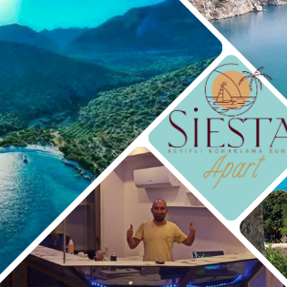 Siesta Apart, 2023 yılında Orhan Kardeşler tarafından kurulmuş olup, Demre/Antalya'nın Beymelek bölgesinde bulunmaktadır. Değerli misafirlerimize fiyat ve kalite arasında iyi bir denge sunmayı amaçlıyoruz. 24 saat hizmet veren temiz ve bakımlı tesisimiz, günlük, haftalık ve aylık kullanım için yeni daireler sunmaktadır. Dairelerimiz günlük kullanım için ihtiyacınız olan her şeyle tam donanımlıdır ve 4 kişiye kadar konaklama imkanı sunmaktadır. 2 yetişkin ve 2 çocuk (12 yaş altı) için konforlu bir şekilde döşenmiştir. Her odada akıllı ve enerji tasarruflu klimalar, buzdolabı, televizyon, çamaşır makinesi, su ısıtıcısı ve ekmek kızartma makinesi bulunmaktadır. Ayrıca, resepsiyondan 24 saat boyunca ütü, saç kurutma makinesi, elektrikli süpürge ve çamaşır kurutma makinesi kullanabilirsiniz.